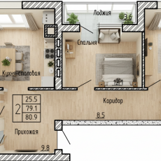 Купить 2-к квартиру, №35, 80.90 м², ул. Генерала Бакланова д1, 4 этаж
