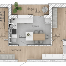 Купить 2-к квартиру, №61, 65,40 м², ул. Атамана Белова 1 поз 2, 1 этаж