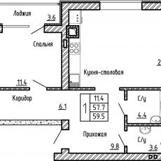 Купить 1-к квартиру, №17, 59,5 м², ул. Генерала Бакланова д1, 1 этаж