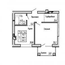 Купить 1-к квартиру, №22, 39,7 м², ул. Атамана Белова 1 поз 2, 1 этаж