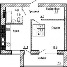 Купить 1-к квартиру, №26, 40.90 м², ул. Генерала Бакланова д1, 2 этаж