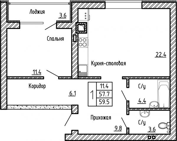 Купить 1-к квартиру, №41, 59,5 м², ул. Генерала Бакланова д1, 1 этаж