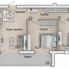 Купить 2-к квартиру, №15, 75.90 м², ул. Генерала Бакланова д1, 4 этаж