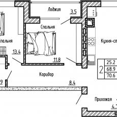 Купить 2-к квартиру, №8, 70.60 м², ул. Генерала Бакланова д1, 2 этаж